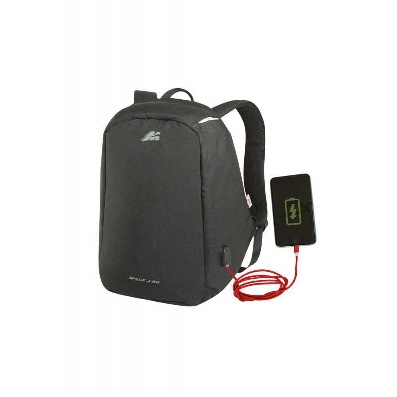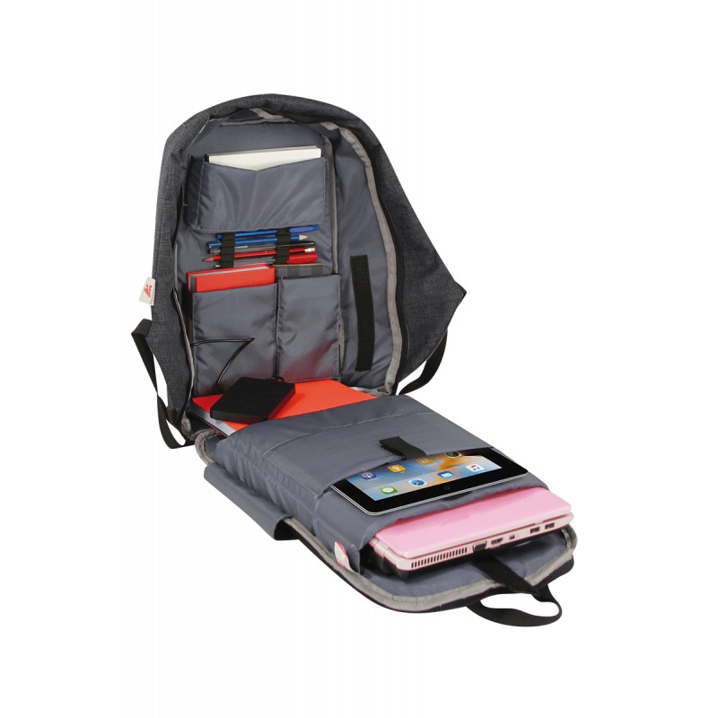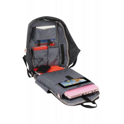 Inteligentne navrhnutý batoh, ktorý je funkčný aj bezpečný. Má ergonomickú chrbtovú opierku s priedušnými sieťovanými vypchávkami, popruh na upevnenie batožiny, tvarované a polstrované ramenné popruhy s malým vreckom. Charakteristickým znakom tohto batohu je široký a pohodlný uzáver proti krádeži, ktorý sa nachádza na zadnej strane batohu a chráni predmety počas cestovania. Na bočnej strane má praktický port USB s odnímateľným káblom, ktorý vám umožňuje nabíjať telefón pripojením akéhokoľvek typu napájacieho zariadenia (nie je súčasťou balenia) vo vnútornom vrecku. Vnútri je veľmi priestranný a dobre organizovateľný vďaka mnohým priehradkám. Batoh sa dá otvoriť o 180° a pohodlne sa doň zmestí PC. Reflexné vložky.