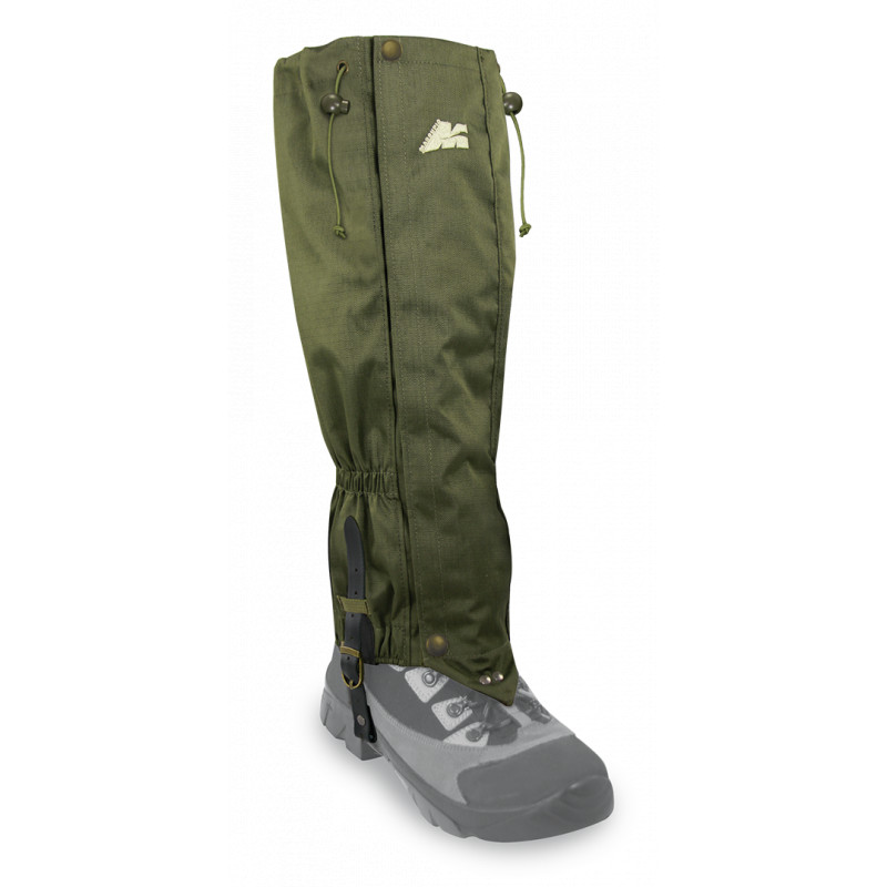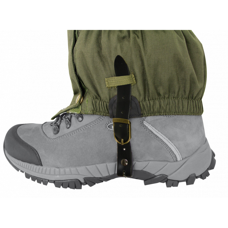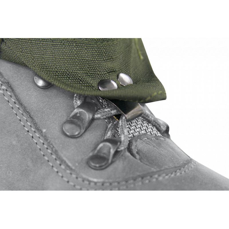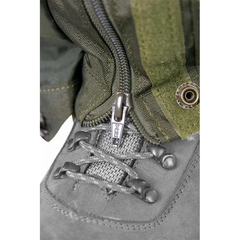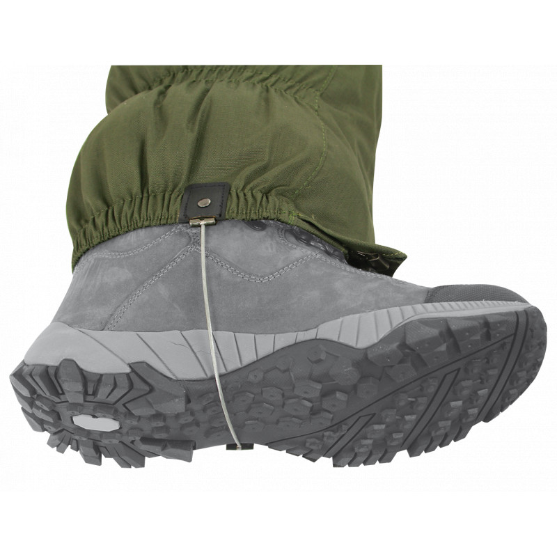 Podšité turistické návleky s predným zipsom, zapínanie zhora nadol s vrchnou sťahovacou šnúrkou - vzadu nastaviteľnou. S viacvrstvovým popruhom, systémom upevnenia oceľového lanka (2 náhradné lanká súčasťou balenia), ykk zipsom a upevňovacím háčikom.
